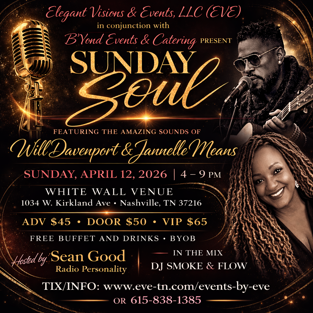 This SUNDAY SOUL Experience is brought to you by Elegant Visions & Events (EVE) and B'Yond Events & Catering